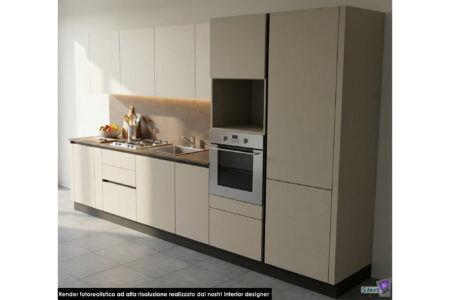 Cucina IN PRONTA CONSEGNA modificabile e adattabile: Finiture e Materiali: Basi e colonne: Melaminico Trend Castano SETA Pensili: Melaminico Trend Polvere SETA Dettagli: Maniglia Trend GRIP a gola Lavagna e zoccolo h.12 Lavagna. Top e schienale: Laminato OSSIDO 825 spessore 2 cm. Dimensioni e Layout: Gruppo Colonne 204 cm: L…