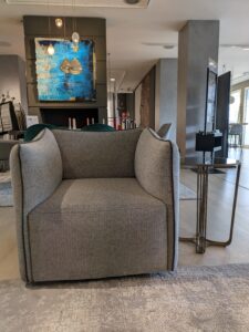Poltrona in tessuto, misure L82 x P76 x H78 cm. Tessuto Dublino 007 Piede: NERO Prezzo comprensivo di IVA. Trasporto da concordare.